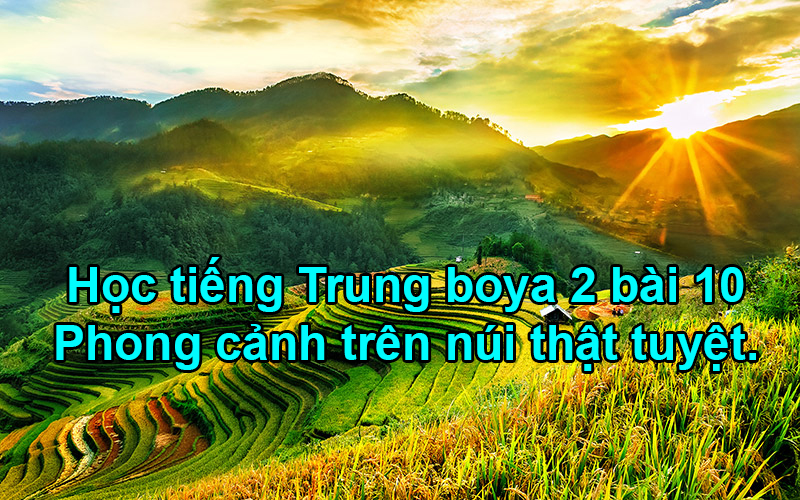 Học tiếng Trung boya 2 bài 10. Phong cảnh trên núi thật tuyệt. I. LUYỆN NGHE II. ĐOẠN HỘI THOẠI 山上的风景美极了。Shānshàng de fēngjǐng měi jíle. 中村: 玛丽,周末去农村的旅行怎么样? 玛丽: 很不错。上午我们先参观了一所敬老院,然后参观了一所幼儿园,我们和孩子们一起唱歌,跳舞,做游戏,非常有意思。 中村: 去农民家了吗? 玛丽: 去了,我们还在农民家吃饭了呢。 中村: 后来去别的地方吗? 玛丽: 下午我们去爬了附近的一座山,山上有古老的长城,非常雄伟。 中村: 是什么山? 玛丽: 想不起山的名字来了,听说是哪个地区最高的山,有几百来高吧。 中村: 那么高,你爬得上去吗? 玛丽: 在朋友们的鼓励下,我好不容易才爬了上去。从山上往远处一看,美极了:蓝蓝的天,白白的云,红红的花,绿绿的草,小鸟在天上飞来飞去。。。真像一幅风景画。 中村: 听你这么一说,我真后悔没有去。 玛丽: 没关系,我照很多相片,可以送给你。 Zhōngcūn: Mǎlì, zhōumò qù nóngcūn de […]