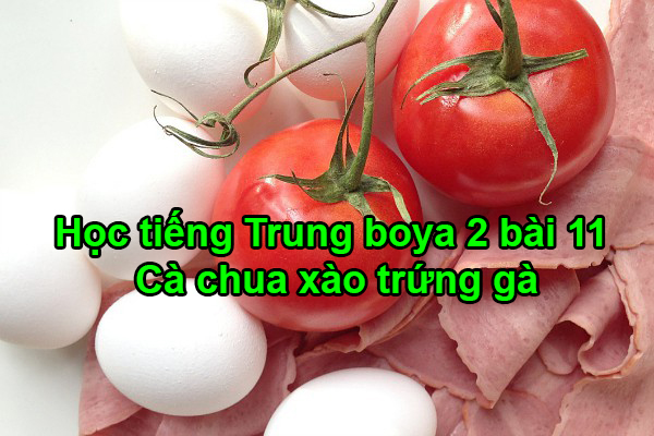 Học tiếng Trung boya 2 bài 11. Cà chua xào trứng gà I. LUYỆN NGHE II. ĐOẠN HỘI THOẠI 西红寺抄鸡蛋 Xī hóng sì chāo jīdàn Cà chua xào trứng gà 张红: 你不是想学做中国菜吗?今天我就教你做一个中国的家常菜。 玛丽: ”家常菜“ 是什么菜呀? 张红: 家常菜就是中国人平时在家里常吃的菜。 玛丽: 好啊,我就想学做在家里吃的菜。对了,做什么菜呀? 张红: 西红柿炒鸡蛋,又好吃又好学,咱们一起做怎么样? 玛丽: 行,我做什么? 张红: 来,把鸡蛋达到这个碗里,用筷子搅拌均匀,再把西红柿切成小块儿。 玛丽: 你看这么大行吗? 张红: 挺好。你把火点着,把锅放在火上,往锅里倒点儿油,把鸡蛋放进去炒一下儿,倒出来。在放一点儿油,把西红柿放进锅里炒熟,把炒好的鸡蛋放进去,别忘了加点儿白糖,最后再加点盐。。。好了,尝尝,怎么样? 玛丽: 又好看又好吃,真不错! 张红: 是啊,这就是中国菜的特点:看起来漂亮,闻起来很香,吃起来好吃。 玛丽: 就是做起来不太容易。 […]