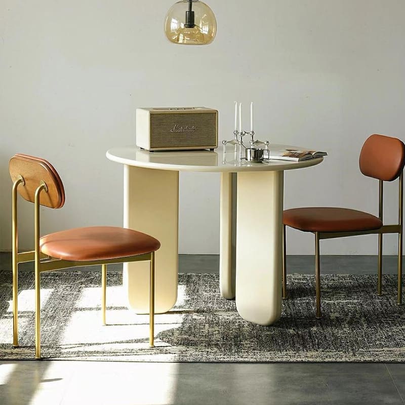 Bộ bàn ghế tròn phòng nhỏ nhà Bắc Âu đơn giản màu kem lưới – BGCF-673