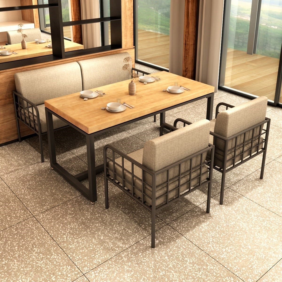 Bàn ghế ăn thương mại hiện đại gỗ đặc rèn sắt quán cà phê – BGCF-1156