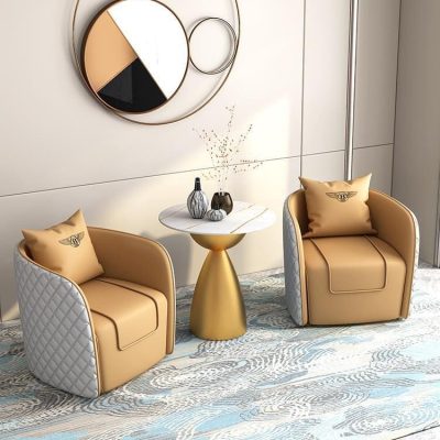 Bàn ghế ăn cafe da phong cách châu Âu Sofa đơn VIP một Bàn – BGCF-1703