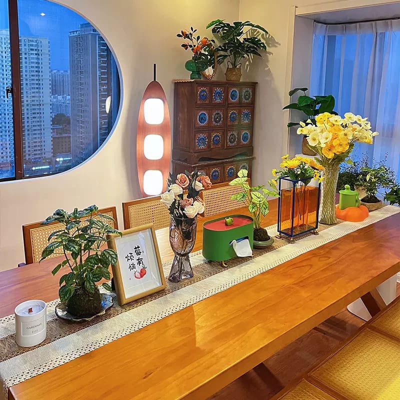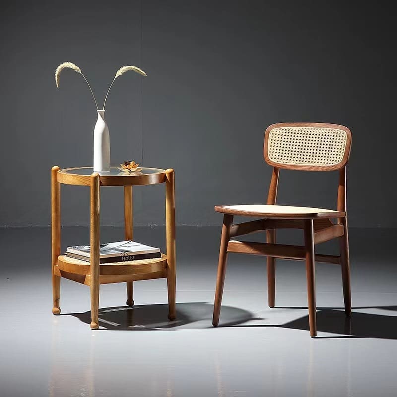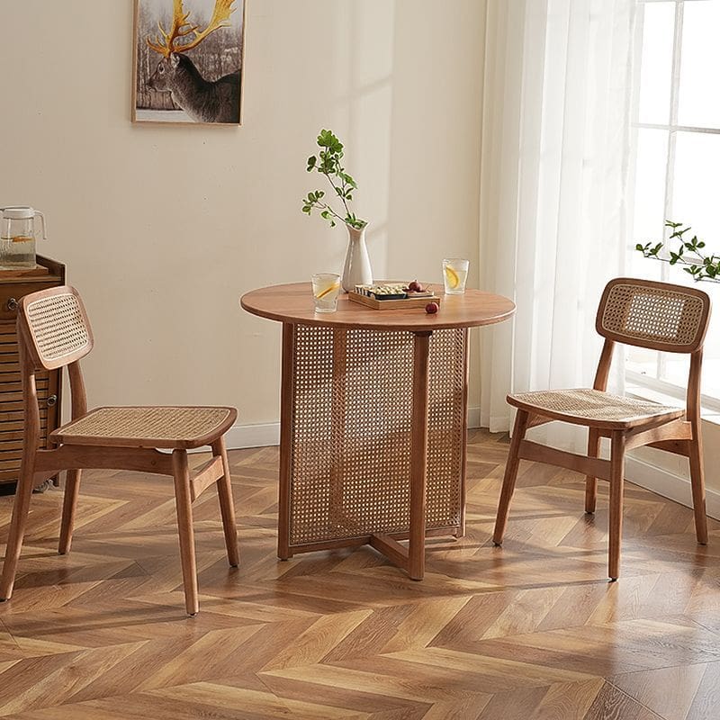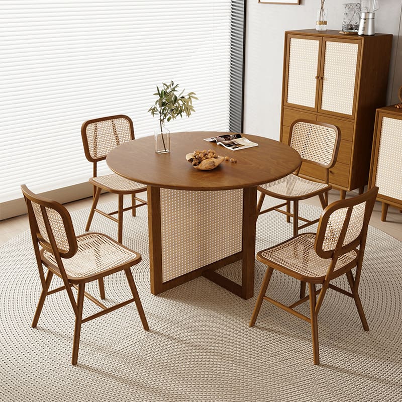Bàn ghế Bắc Âu Gỗ Chắc Chắn Bàn Tròn Mây Wabi Sabi Phong – BGCF-617