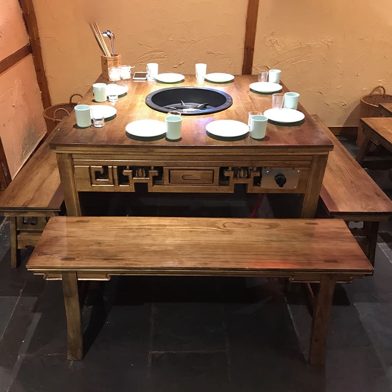 Bàn ăn thương mại bàn ghế lẩu dali thịt nướng cao cấp, tiện lợi cho nhà hàng BN-453