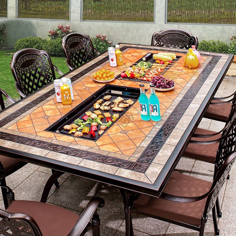 Bàn ghế nướng ngoài trời nhôm đúc thương mại ngoài cao cấp, tiện lợi cho nhà BN-96