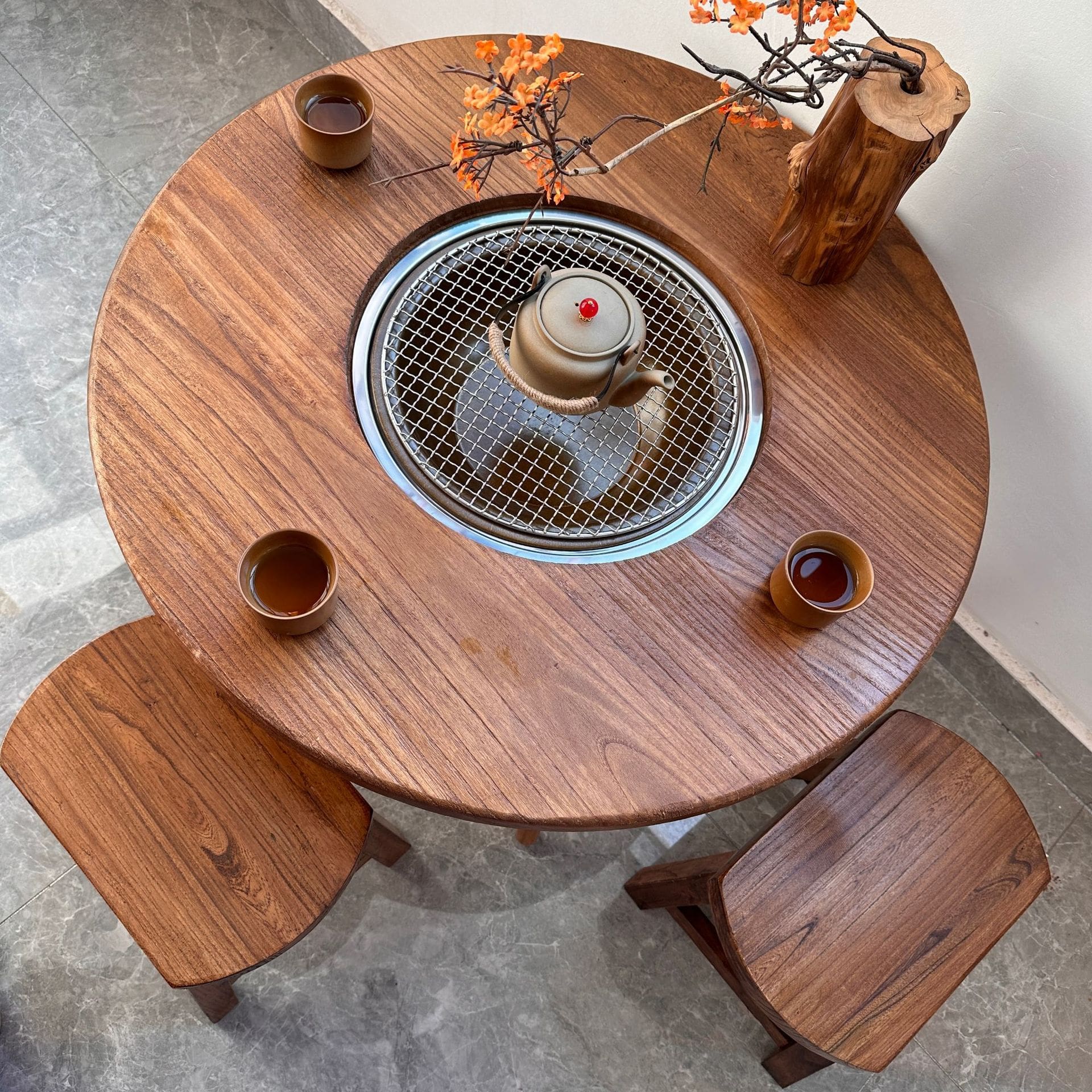 Gỗ nguyên khối bàn lẩu cảm ứng tích hợp nhà cao cấp, tiện lợi cho nhà hàng BN BN-443