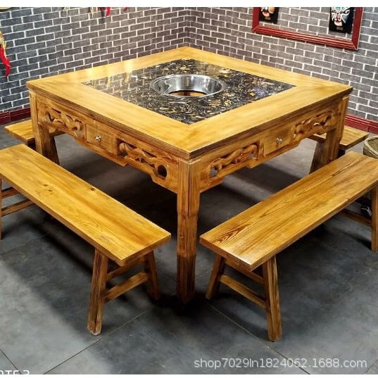 Lẩu nhà hàng xiên gỗ nguyên khối retro bàn lẩu cao cấp, tiện lợi cho nhà hàng BN-182
