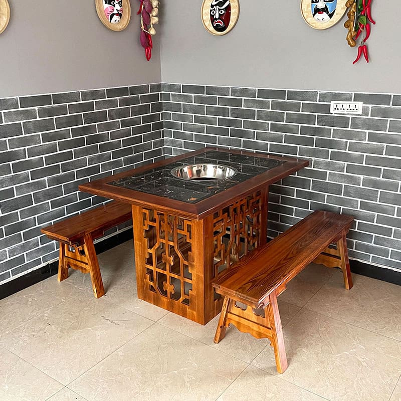 Lẩu nhà hàng xiên gỗ nguyên khối retro bàn lẩu cao cấp, tiện lợi cho nhà hàng BN-182