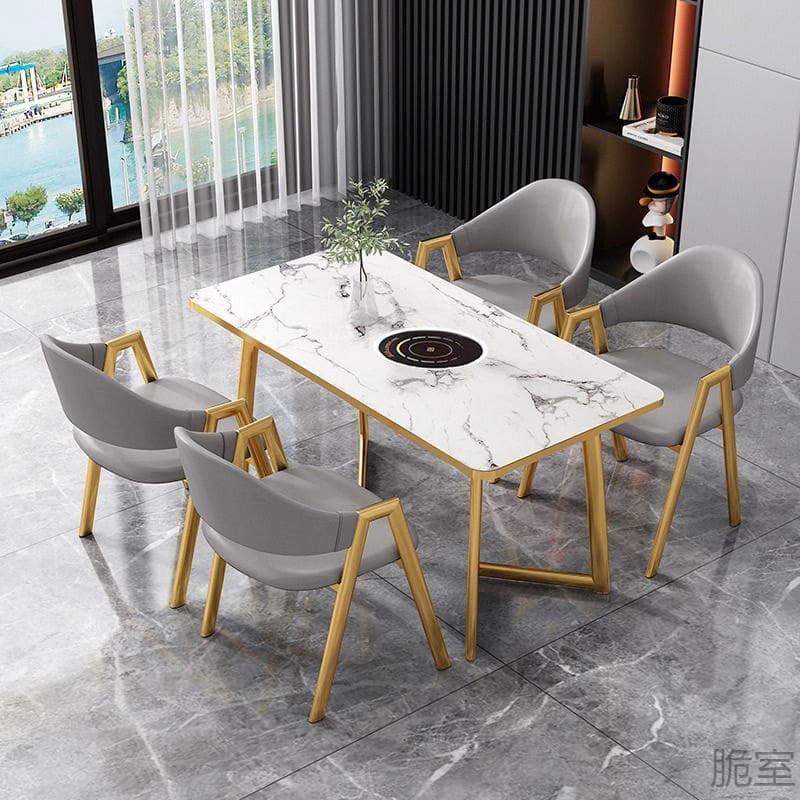 Bàn lẩu đá phiến titan cạnh đá cẩm thạch điện cao cấp, tiện lợi cho nhà hàng BN-172