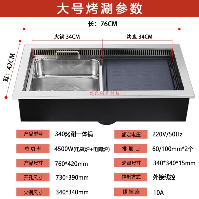 Bếp từ cảm ứng lẩu không khói bàn tích hợp cao cấp, tiện lợi cho nhà hàng BN-01
