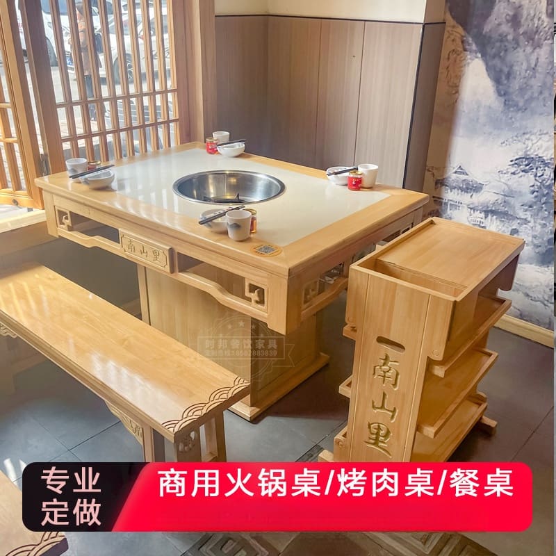 Bàn lẩu mùa đông trung quốc, bàn bếp gỗ cây cao cấp, tiện lợi cho nhà hàng BN BN-129