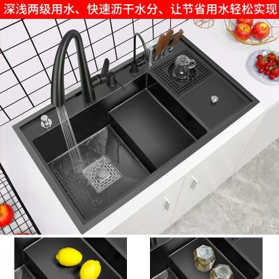 Nhà bếp thép không gỉ 304 nano đen thác nước cao cấp, tiện lợi cho nhà hàng C CR-63
