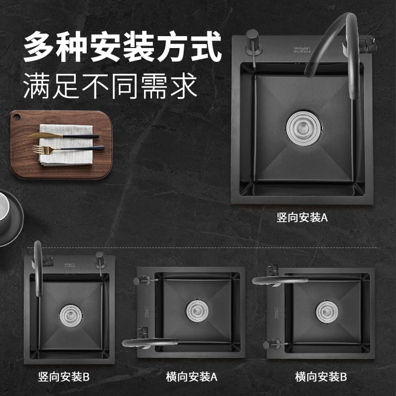 Nhà bếp inox 304 bồn rửa nhỏ đơn khe cắm cao cấp, tiện lợi cho nhà hàng CR-380