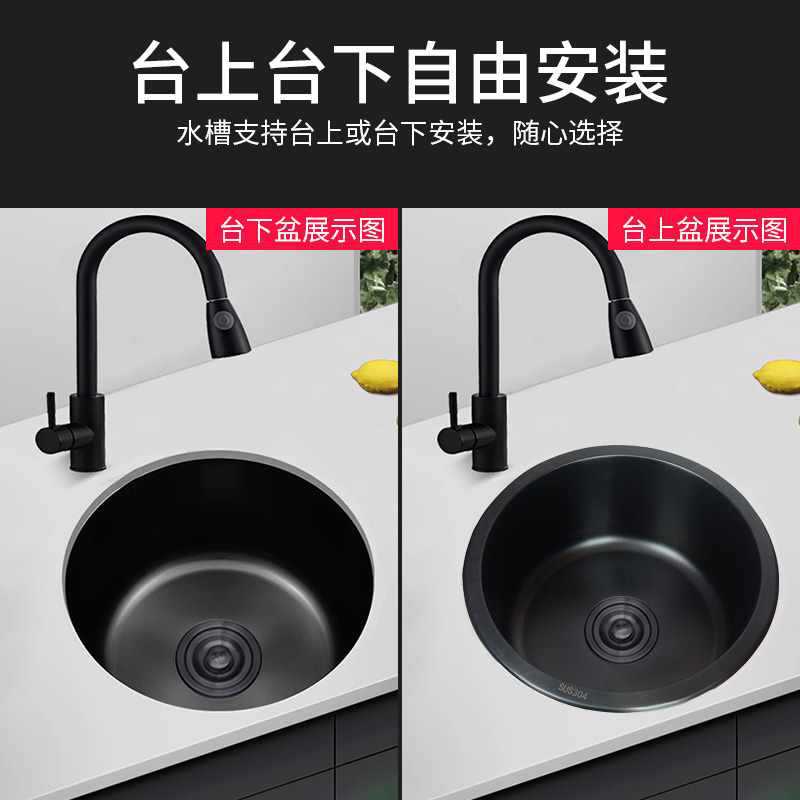Chậu rửa thanh tròn màu đen nano bồn rửa chén cao cấp, tiện lợi cho nhà hàng CR-101