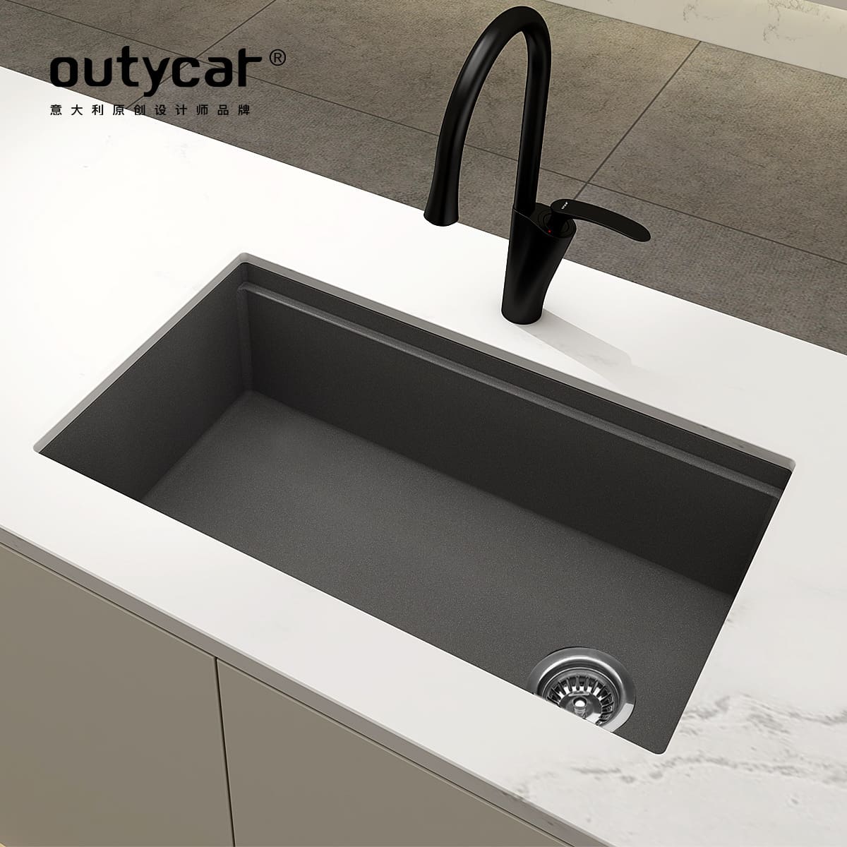 Bán buôn bồn rửa bằng đá thạch anh đen lớn cao cấp, tiện lợi cho nhà hàng CR-60