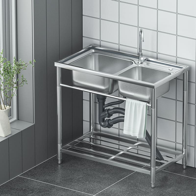 A947 bồn rửa inox đôi khe chậu rửa có giá cao cấp, tiện lợi cho nhà hàng CR-354
