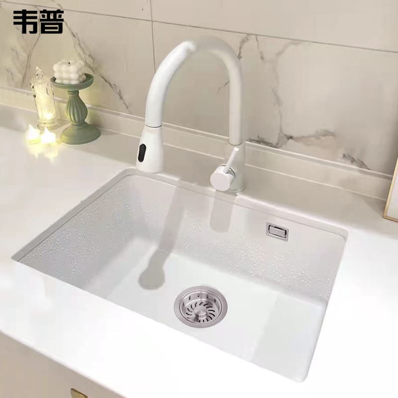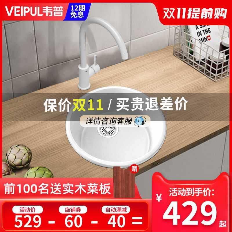 Wepp đá thạch anh trắng thanh tròn bồn rửa nhỏ cao cấp, tiện lợi cho nhà hàng CR-161