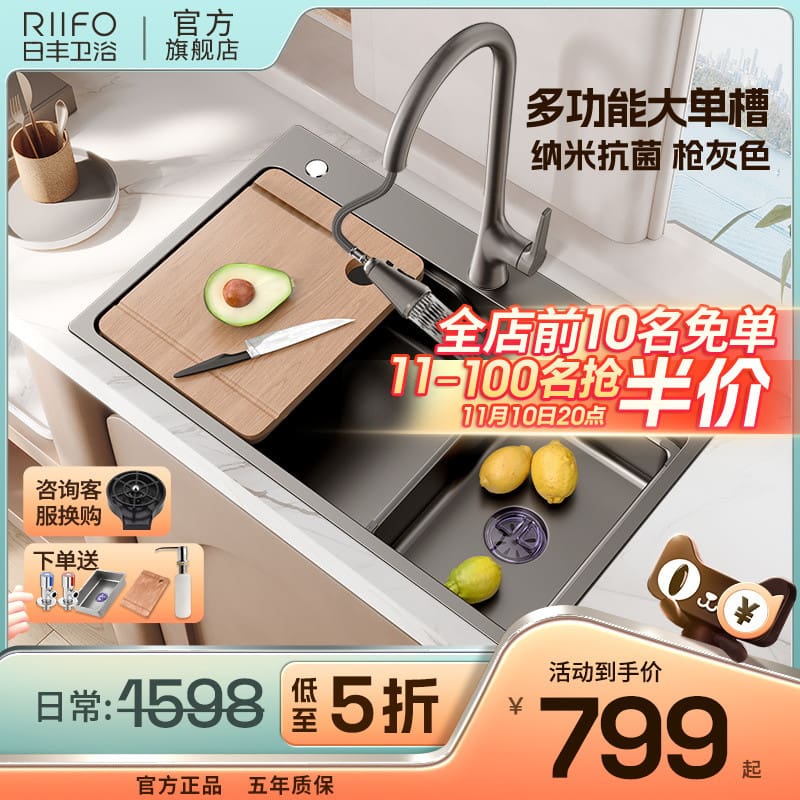 Rifeng nano thép không gỉ nhật bản bồn rửa lớn cao cấp, tiện lợi cho nhà hàng CR-35