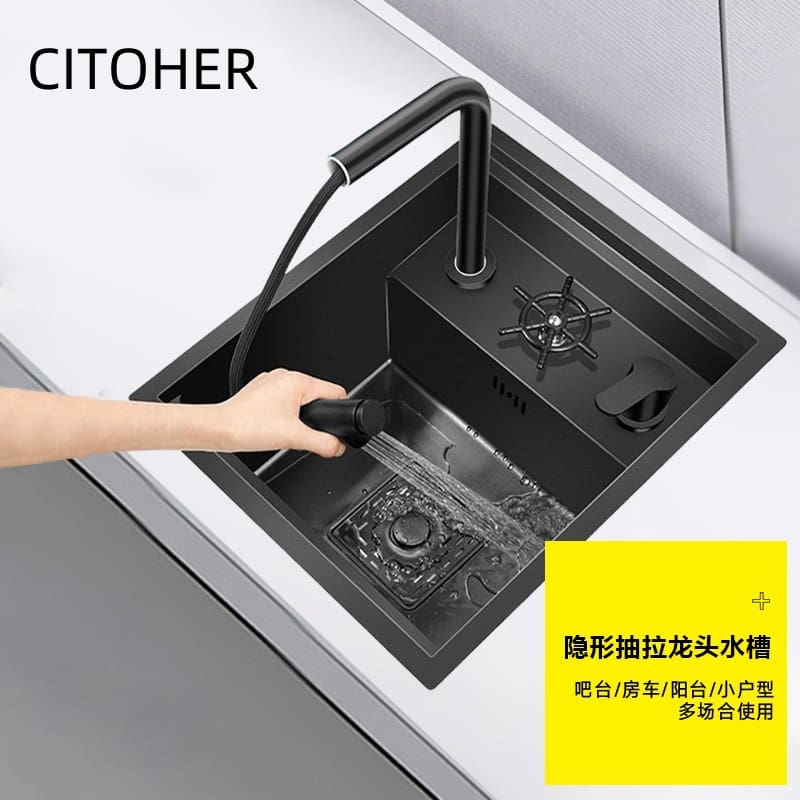 Bồn rửa quầy bar nhà bếp vô hình nano đen cao cấp, tiện lợi cho nhà hàng CR-128