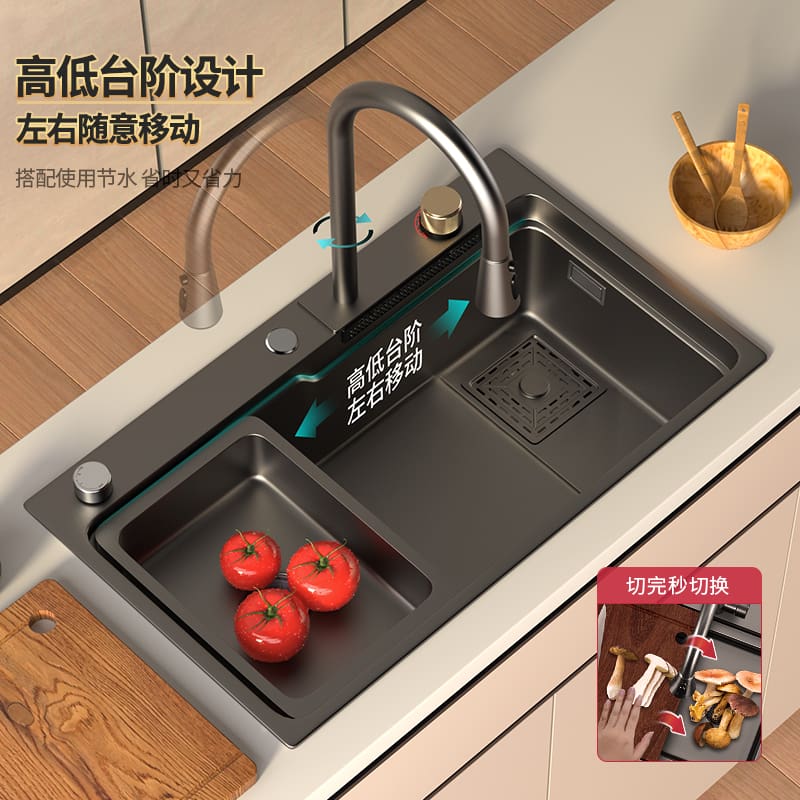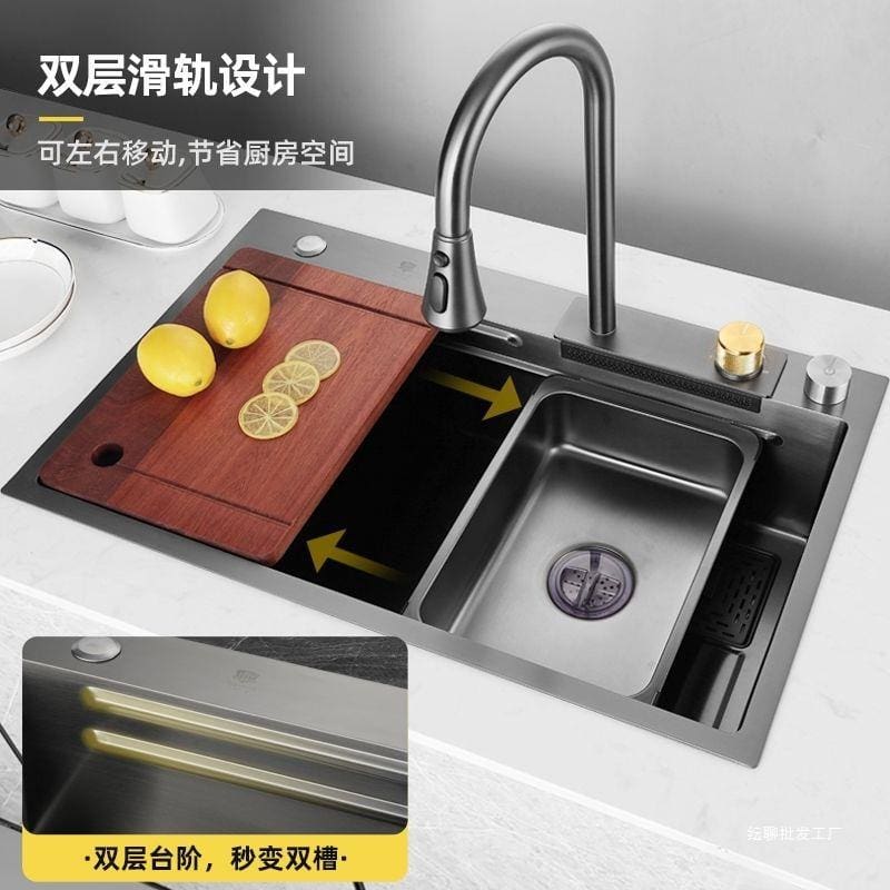 Nhà bếp nano đen dày tắm mưa thác bồn rửa cao cấp, tiện lợi cho nhà hàng CR-371