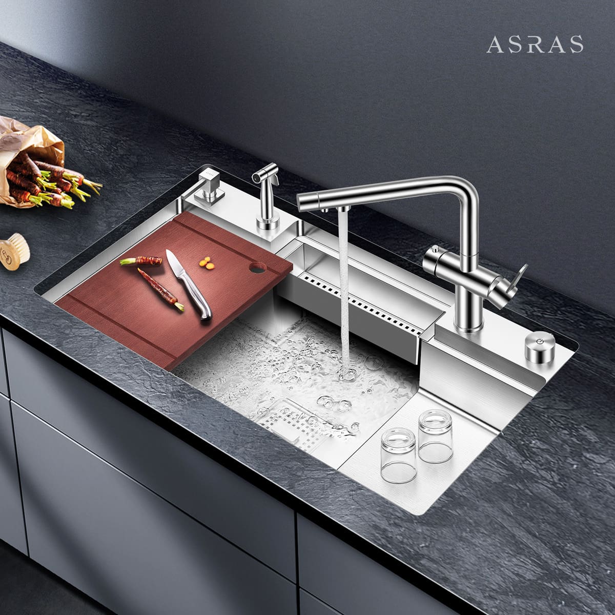 Nhà bếp nano tản lượng mưa thác nước inox dày cao cấp, tiện lợi cho nhà hàng CR-338