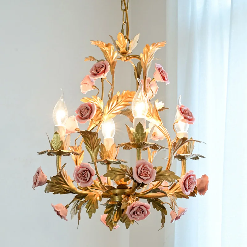 Hoa E14 Led Đèn Chùm hoa hồng Đồng gốm sứ Đèn Chùm Ăn Phòng Khách Bé Gá – DC-366