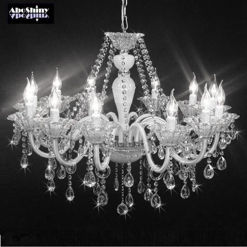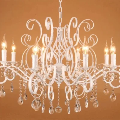 Châu Âu Cổ Điển Vintage Sắt Trắng Đèn Chùm Đèn Nến Với Mặt Dây Pha Lê c – DC-161