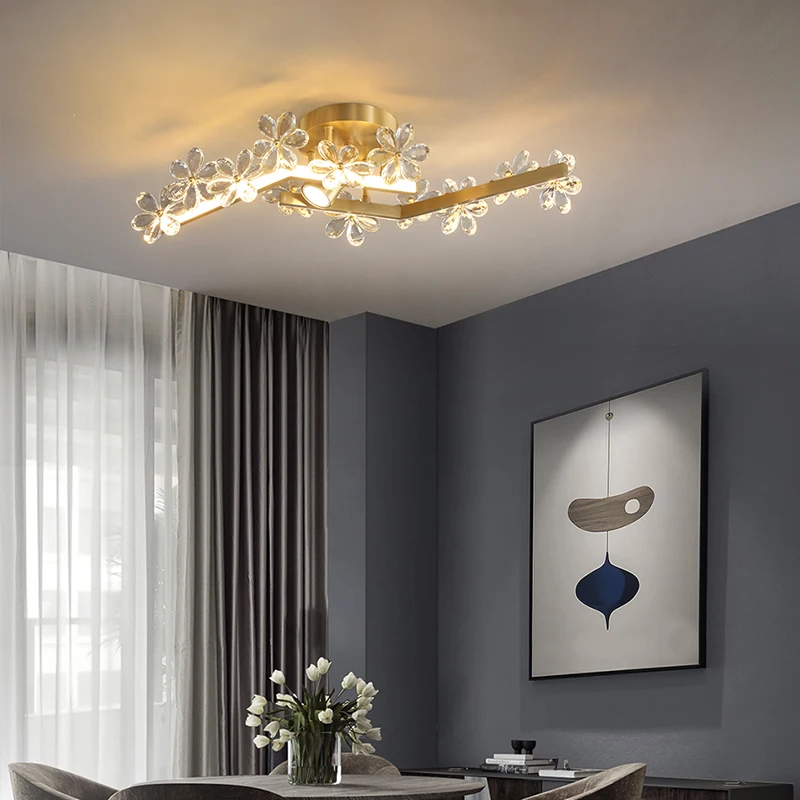 Hiện đại đơn giản hoa pha lê vàng trần đèn chùm ánh sáng phòng khách sa – DC-253