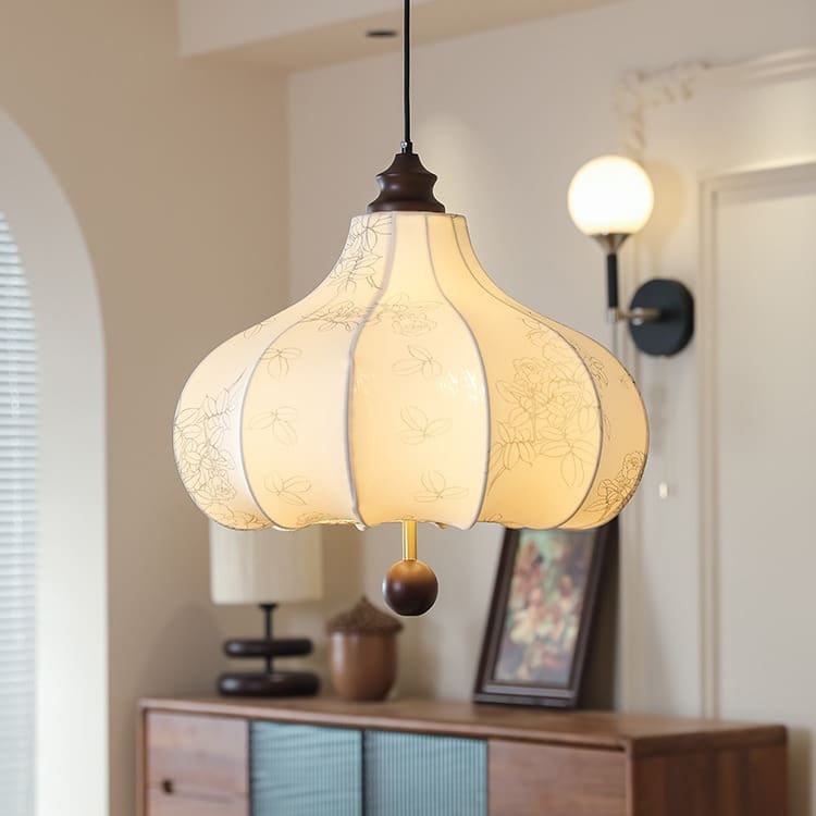 Pháp retro thời trung cổ nhà hàng trần vải đèn chùm in hoa văn gỗ chắc – DC-931