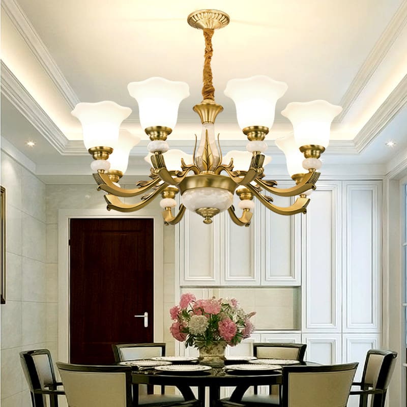 Ánh sáng sang trọng Đèn chùm bằng đá cẩm thạch hoàn toàn bằng đồng Đèn – DC-950