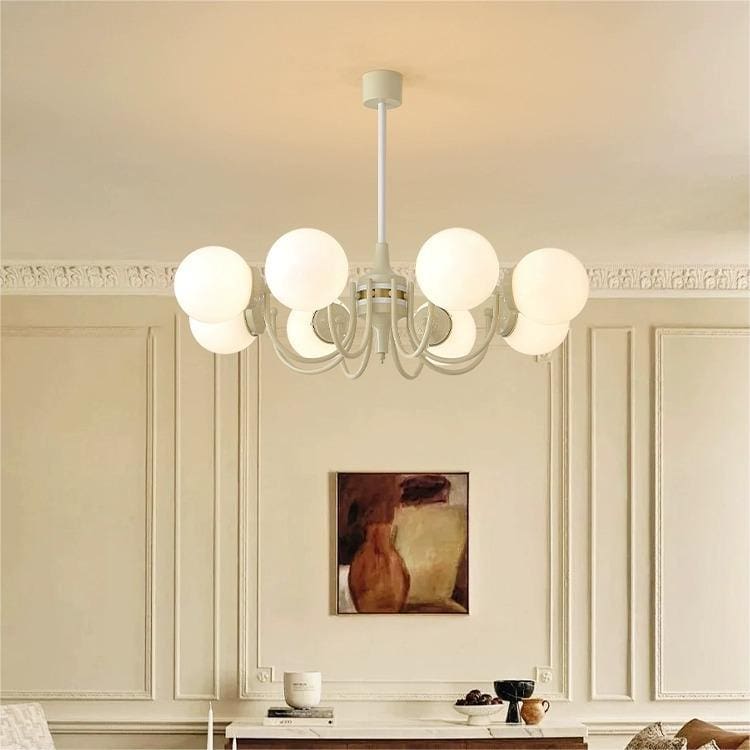 Đèn phòng khách kiểu Pháp, đèn chùm hạt gió màu trắng sữa thời trung cổ – DC-941