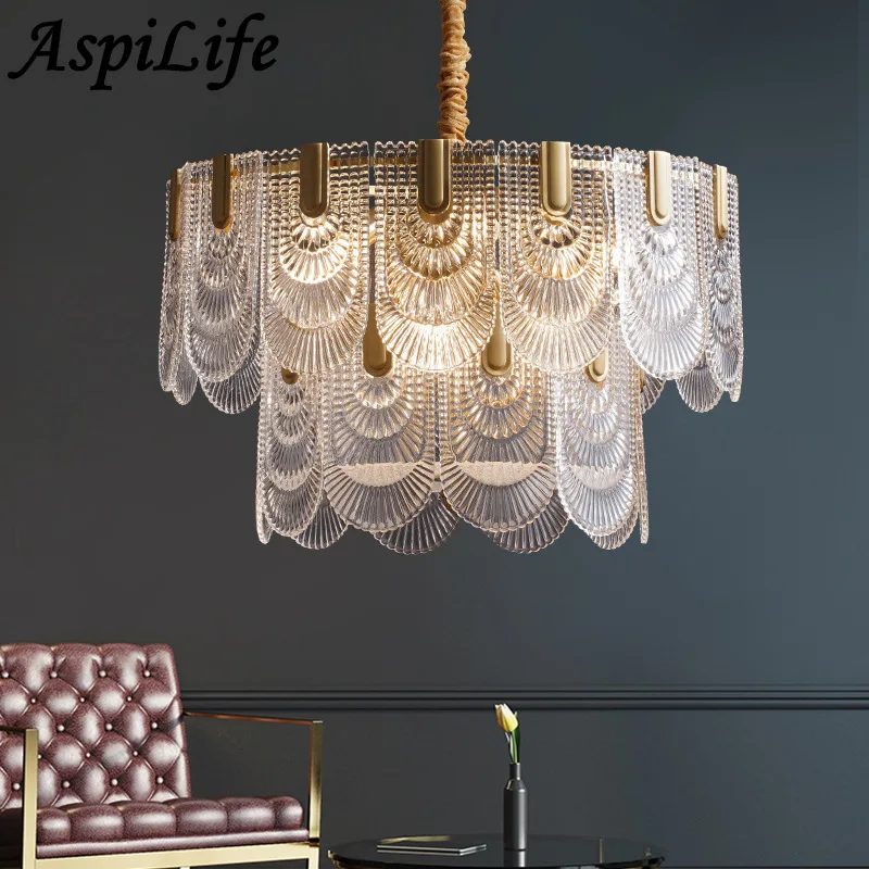 Phong Cách Pháp Hiện Đại Lá Kính Đèn LED Đèn Chùm Cho Phòng Khách Phòng – DC-254