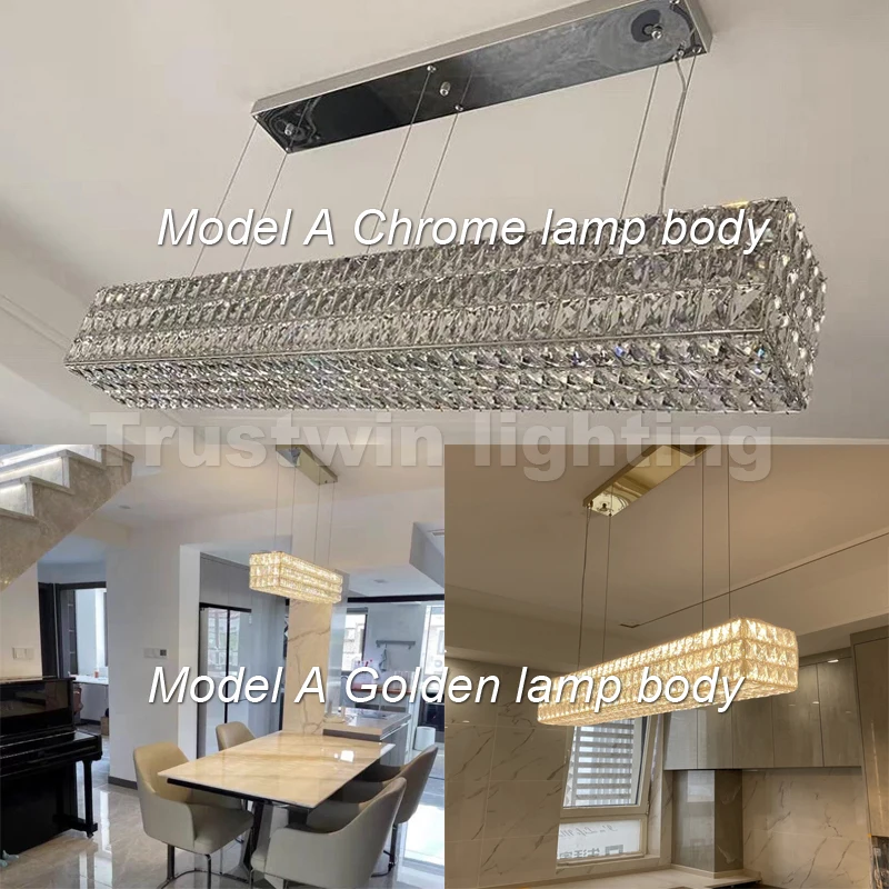 Đèn chùm pha lê trần hiện đại bằng thép không gỉ cho bàn ăn hình chữ nh – DC-545