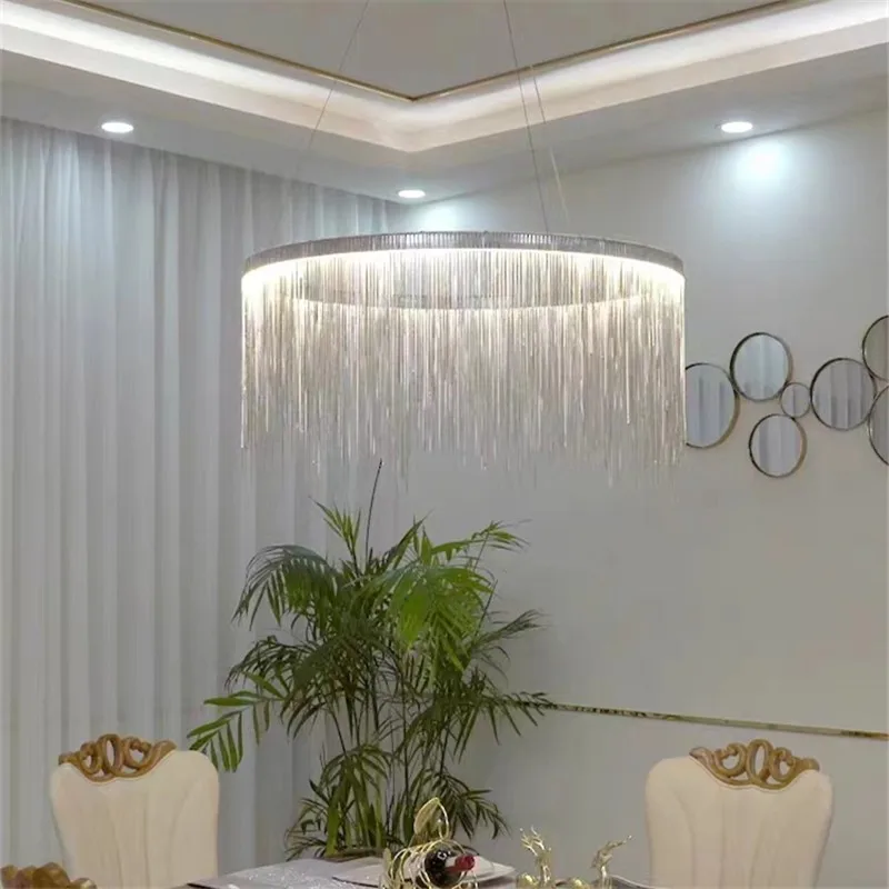 Bohemian Đèn Chùm Phòng Khách Nhà Hàng Bạc Đèn Treo Dây Xích Tua Rua Đè – DC-365