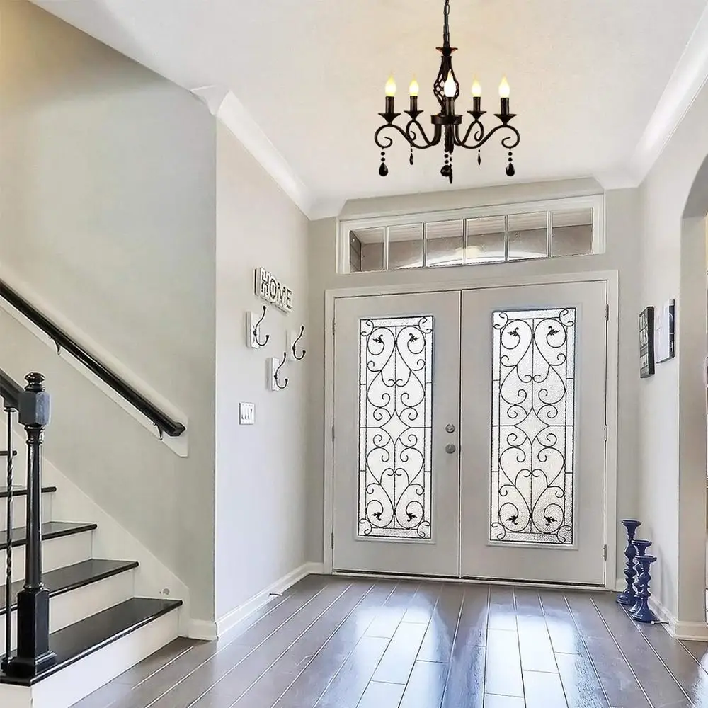 Đèn chùm kim loại LED 5 đèn Đèn chùm pha lê màu đen Đèn chùm công nghiệ – DC-277