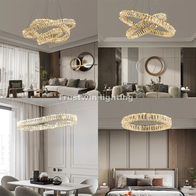 Đèn Chùm Pha Lê Tròn LED Trong Nhà Hiện Đại 40 60 80 100CM Vòng Tròn Tr – DC-473
