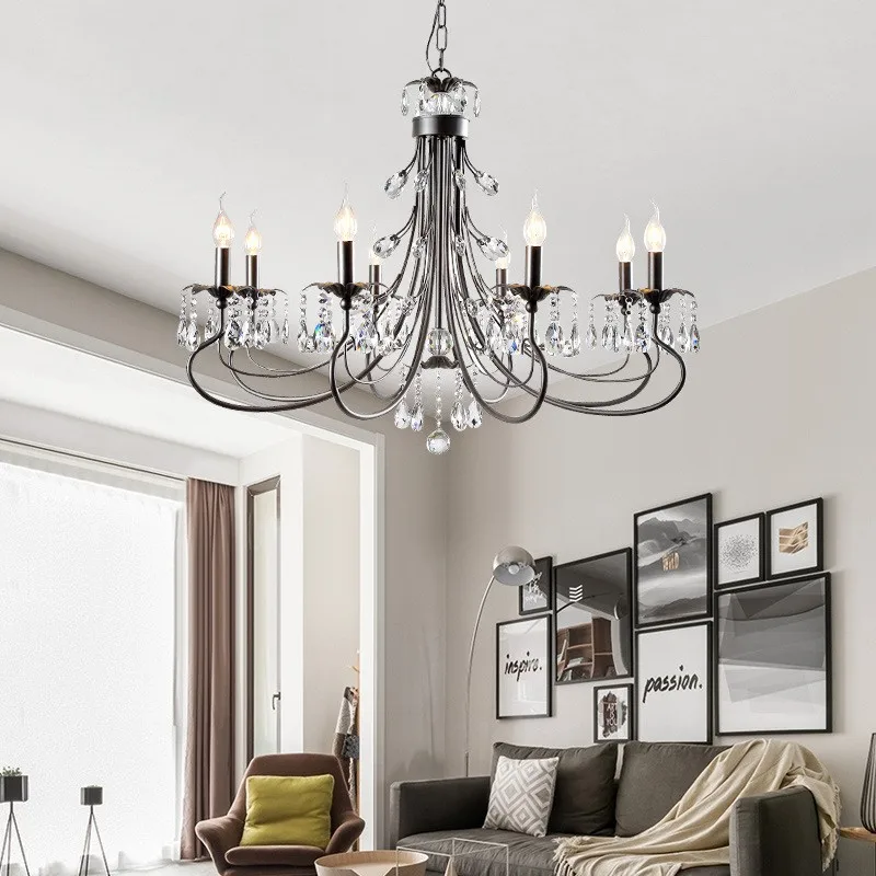 Xuyên biên giới Mỹ sắt đèn nến pha lê led đèn chùm phòng khách đèn chi – DC-1064