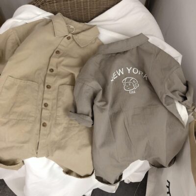 Áo sơ mi ngắn tay in bốn màu phong cách mới mùa hè cho bé trai