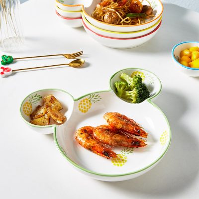 Đĩa gốm sứ hình chuột mickey dành cho trẻ em, họa tiết trái cây.