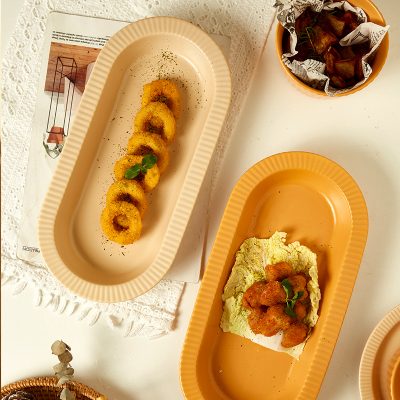 Đĩa hình chiếc mũ, đựng đồ ăn kiểu Tây, phong cách nhà hàng.