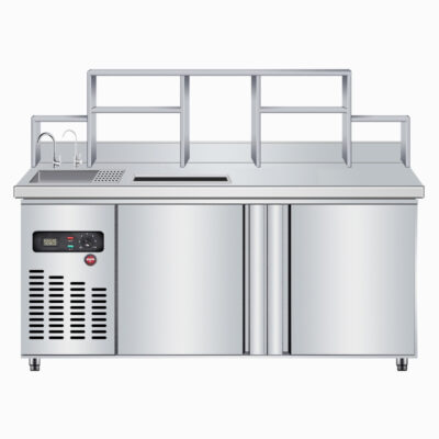 Thiết bị cửa hàng trà sữa trọn bộ mua sắm một lần bàn làm việc giữ lạnh tươi thương mại bàn thao tác bằng thép không gỉ thanh nước