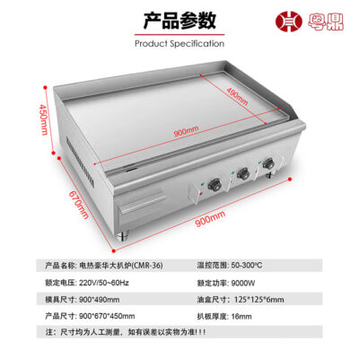 Thương mại 90cm để bàn làm nóng bằng điện dày 16MM tấm sắt mực đốt tay bánh teppanyaki doanh nhân gian hàng thiết bị bánh kếp