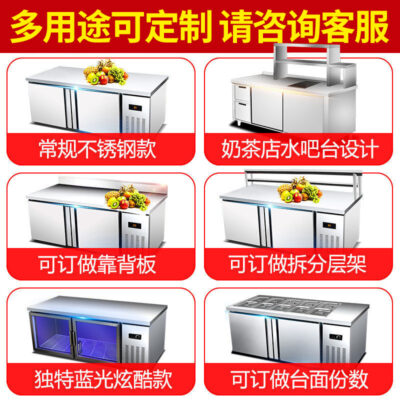 Bàn làm việc làm lạnh và giữ tươi bằng thép không gỉ thiết bị cửa hàng trà sữa thương mại thanh nước nhà bếp món ăn lạnh bàn thao tác lạnh phẳng