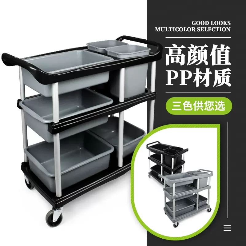 Xe đẩy thu gom thực phẩm ba lớp bằng nhựa chất lượng cho khách sạn DKS-674