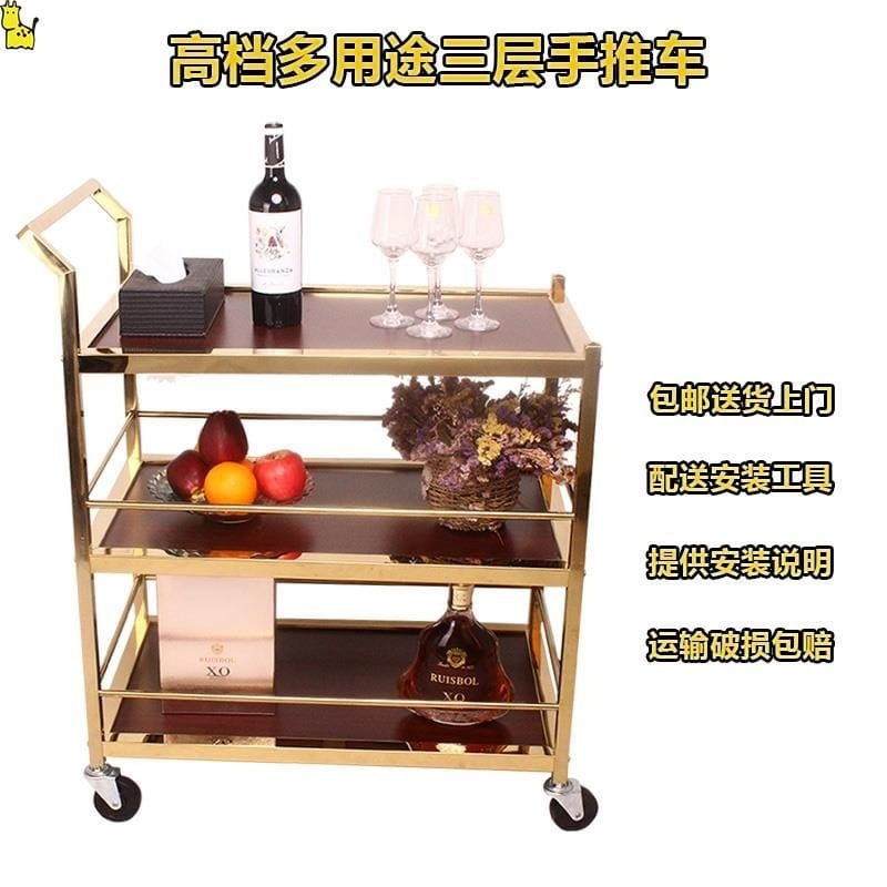 Bắc âu vàng thương mại trà xe di động bánh chất lượng cho khách sạn DKS-552