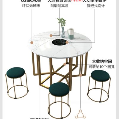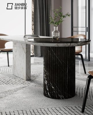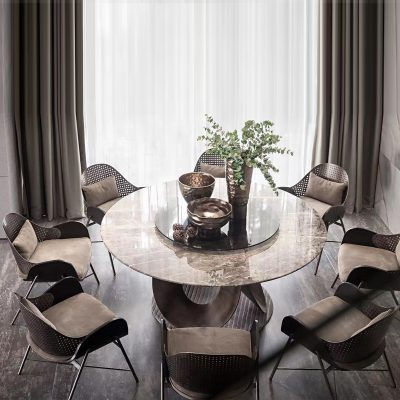 Bàn ăn tròn đá cẩm thạch, chân bàn gỗ.