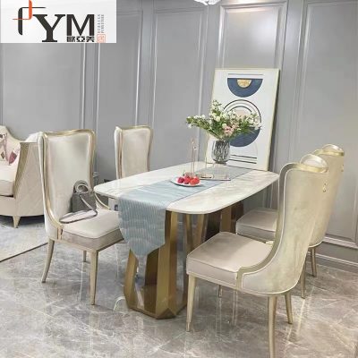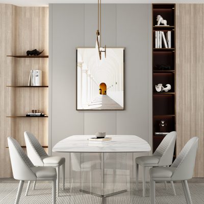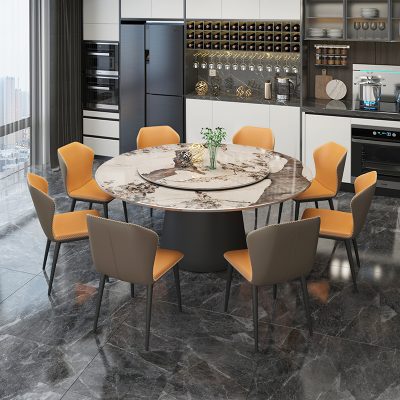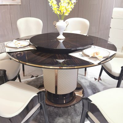Bàn ghế ăn xoay, hiện đại, bề mặt làm bằng đá cẩm thạch, sang trọng.