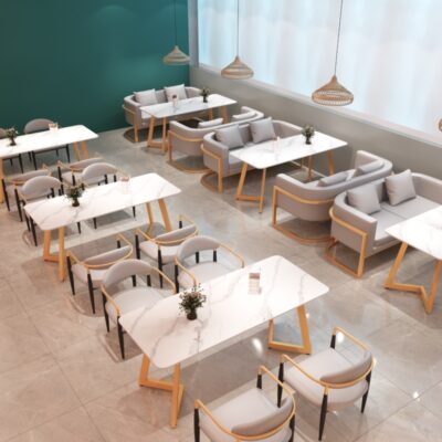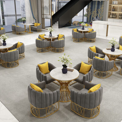 Ngoài tính thoải mái, bàn ghế CF sofa cũng mang đến vẻ đẹp thẩm mỹ cho không gian quán cafe. Chúng thường được thiết kế với các vật liệu và màu sắc đa dạng, từ da tổng hợp sang trọng đến vải mềm mại hoặc những loại vải có hoa văn độc đáo. bàn ghế CF sofa có thiết kế đẹp mắt và tinh tế, tạo nên không gian trang nhã và sang trọng cho quán cafe. Ngoài ra, khả năng tương thích với các phong cách thiết kế nội thất khác nhau cũng là một lợi thế, cho phép bạn tạo ra không gian quán cafe độc đáo và phù hợp với sở thích và phong cách của khách hàng.