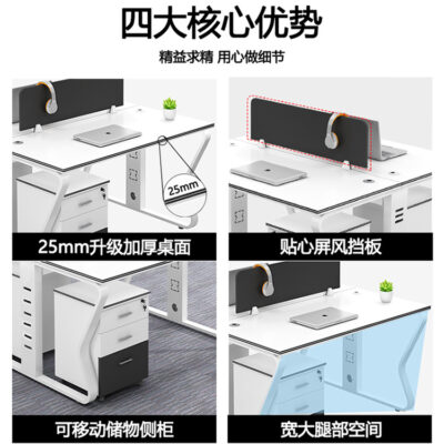 Nội thất văn phòng quảng châu kết hợp / màn hình Phòng làm việc nhân viên bàn ghế văn phòng 4 người bàn nhân viên hiện đại đơn giản