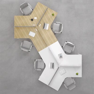 Tổ hợp bàn ghế nhân viên văn phòng hình dáng đặc biệt sáng tạo 3/6/8 Bàn nhân viên 6 ghế văn phòng mặt cong nhiều chỗ ngồi