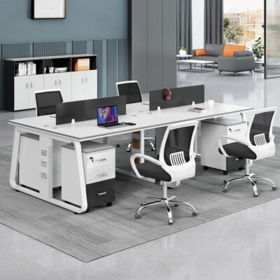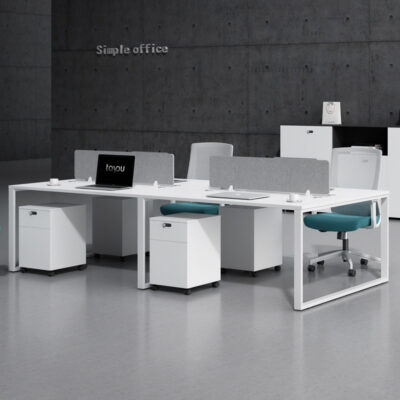 Bàn ghế nhân viên kết hợp bốn hoặc sáu người bàn nhân viên màu trắng thiết kế đơn giản hiện đại bàn khung thép văn phòng